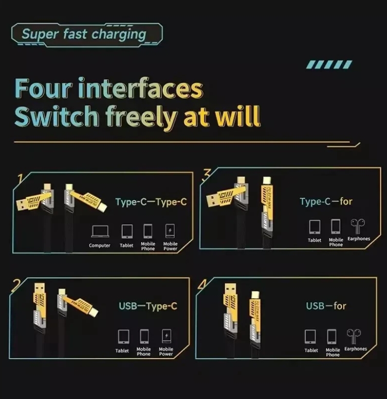 4 in 1 Multi USB PD Charger Charging Cable