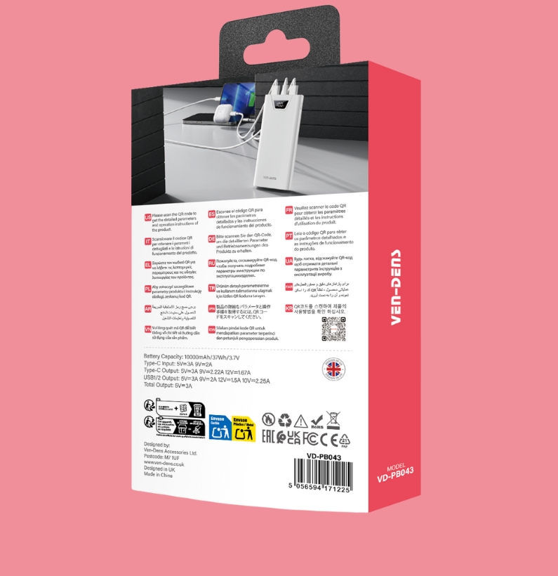 Ven Dens Power Bank 10000mAh Portable Charger 22.5W